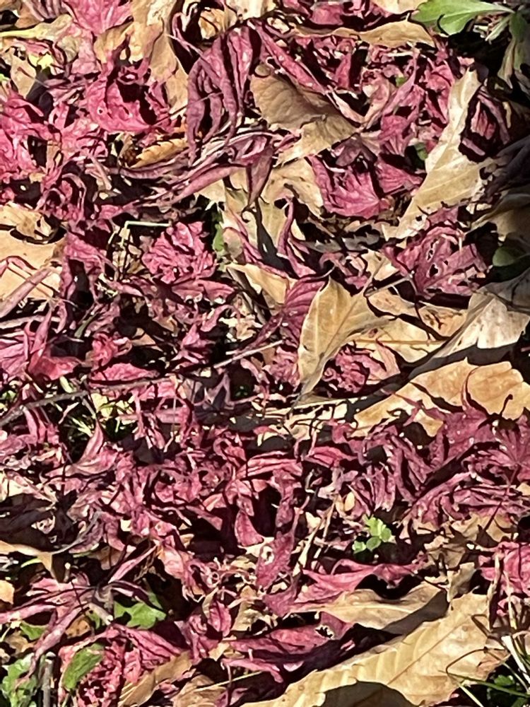 3, 落葉した葉、赤味が抜けてムラサキ色になっている