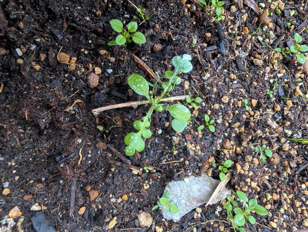 昨年のこぼれ種で芽が出ました🥰