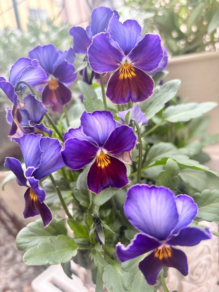 うちの子は咲いてはいるんですけど、パンジーの株がどんどん成長してフレアーブルーを隠してしまってるんです💦