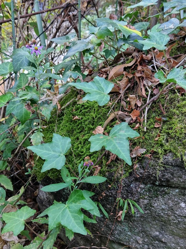 ③大きな石に付いた苔とヘデラと、咲いているお花は野紺菊かなぁ〜❇️💚💟❇️