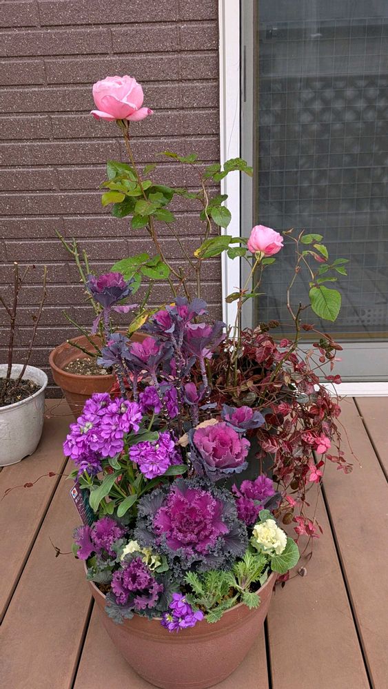 冬になると葉牡丹の寄せ植えを作りたくなります😂