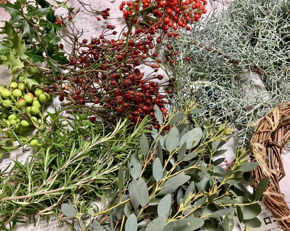 クリちゃんからもらったバラの実や庭のグリーン…花材だけでもワクワク✨