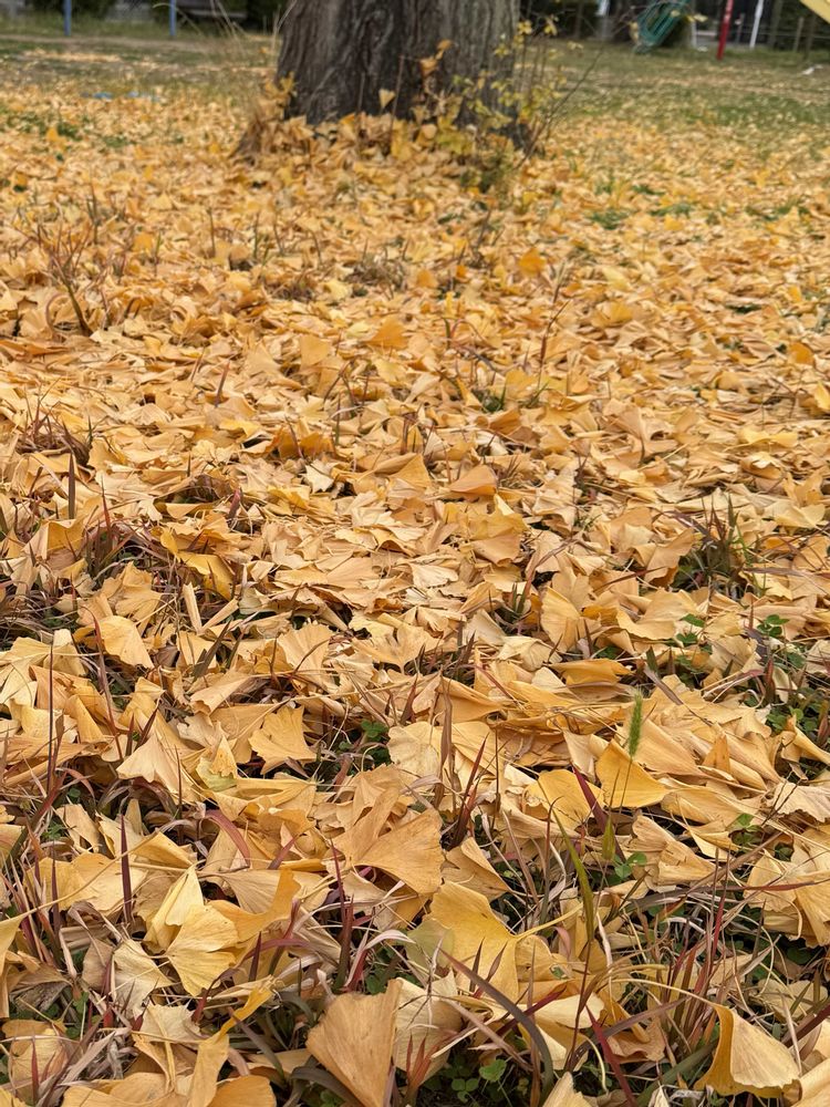 ③近くの公園のイチョウ 葉が皆落ちて歩くとフカフカ👟🍁