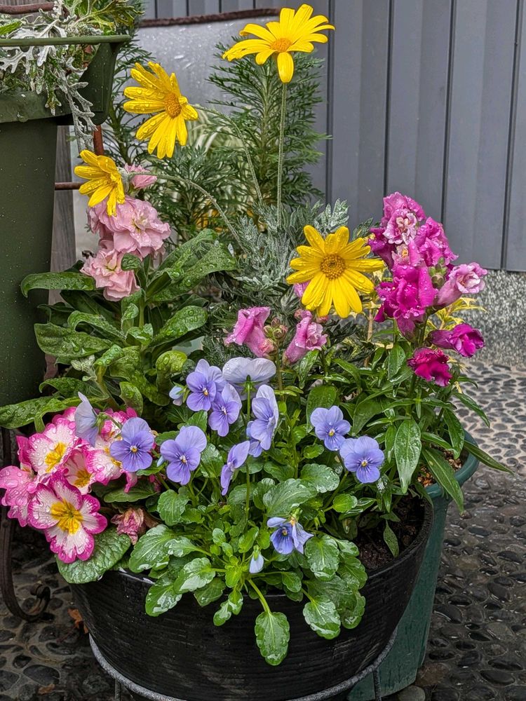 ストックのお花を買いに行ったのにこちらのビオラに目がいき寄せ植え買ってしまいました😂