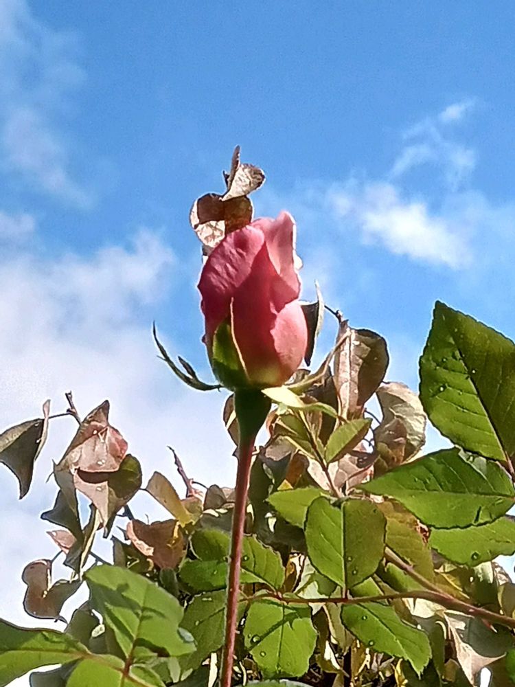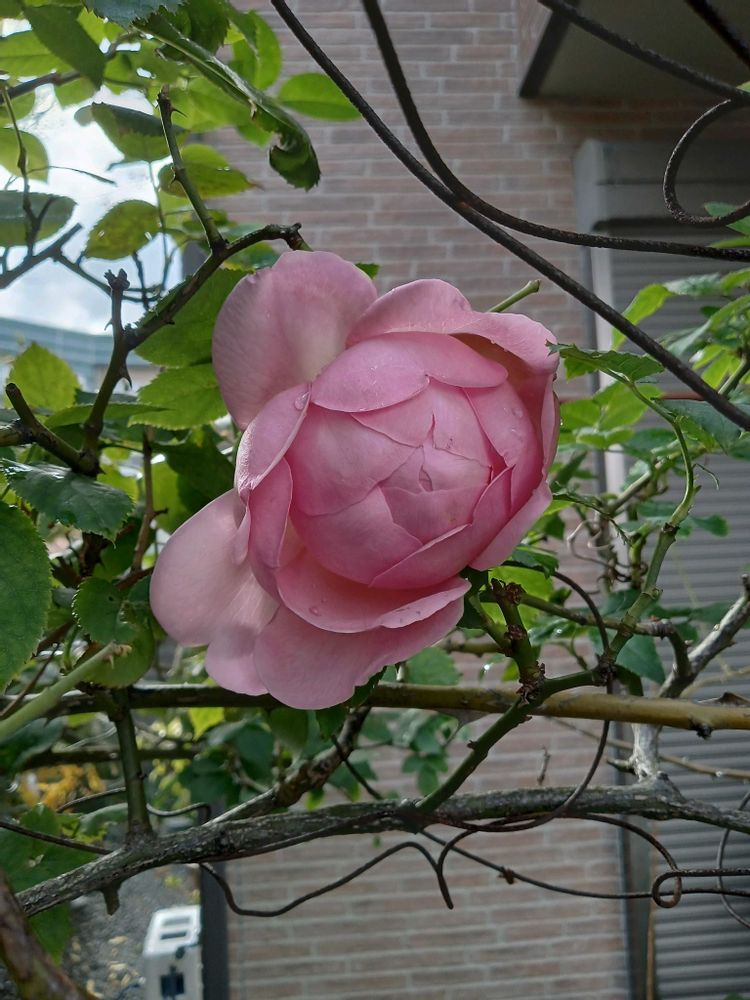 薔薇ソニアリキエル、雨上がりの青空とも映えて…お庭に出ると香って来て、咲いているのが観なくてもわかります〜✨️🩷💞💗🌹