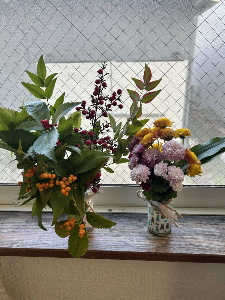 ご近所に千両ありませんか?と、きいたら、こんな素敵な花瓶🏺でいただけました。