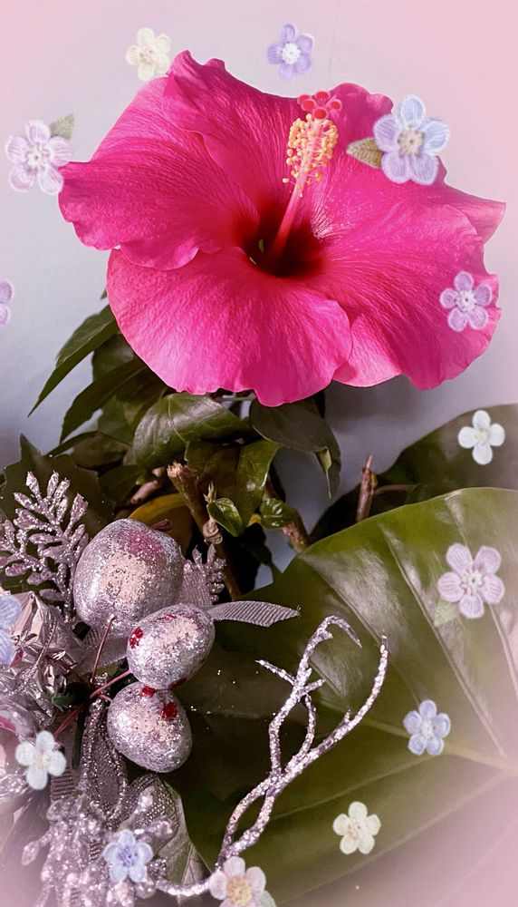ワァーハイビスカス🌺とクリスマスデコのコラボオサレ~✴️✴️✴️💖💖💖