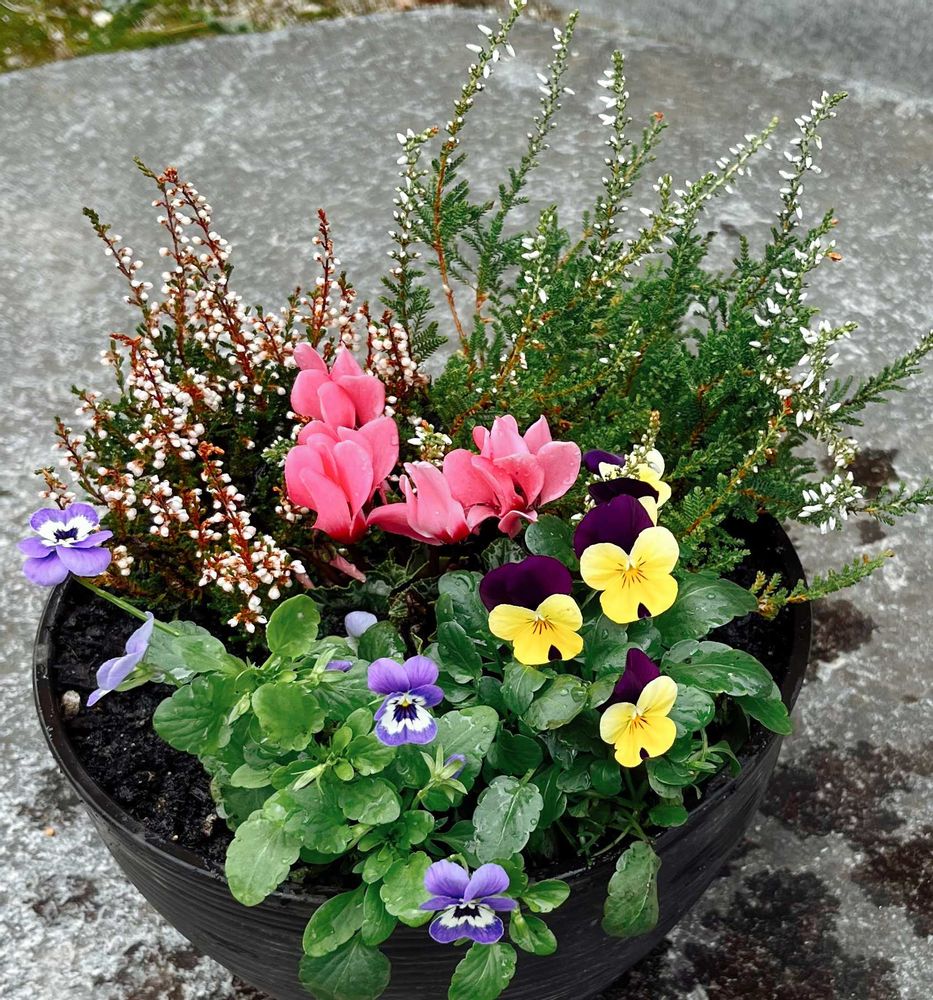 今日は気温低く寒い一日ですね🥶☁️今週はこんな感じの日が続くのかな?寄せ植え出来上がりました^_^🎶💕試行錯誤しながら✨色合い、配置なども難しい🤔