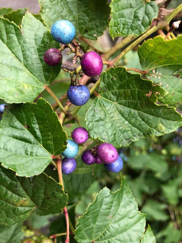 本日はガーデニングはひと休み。お散歩で見つけた野ブドウの実。