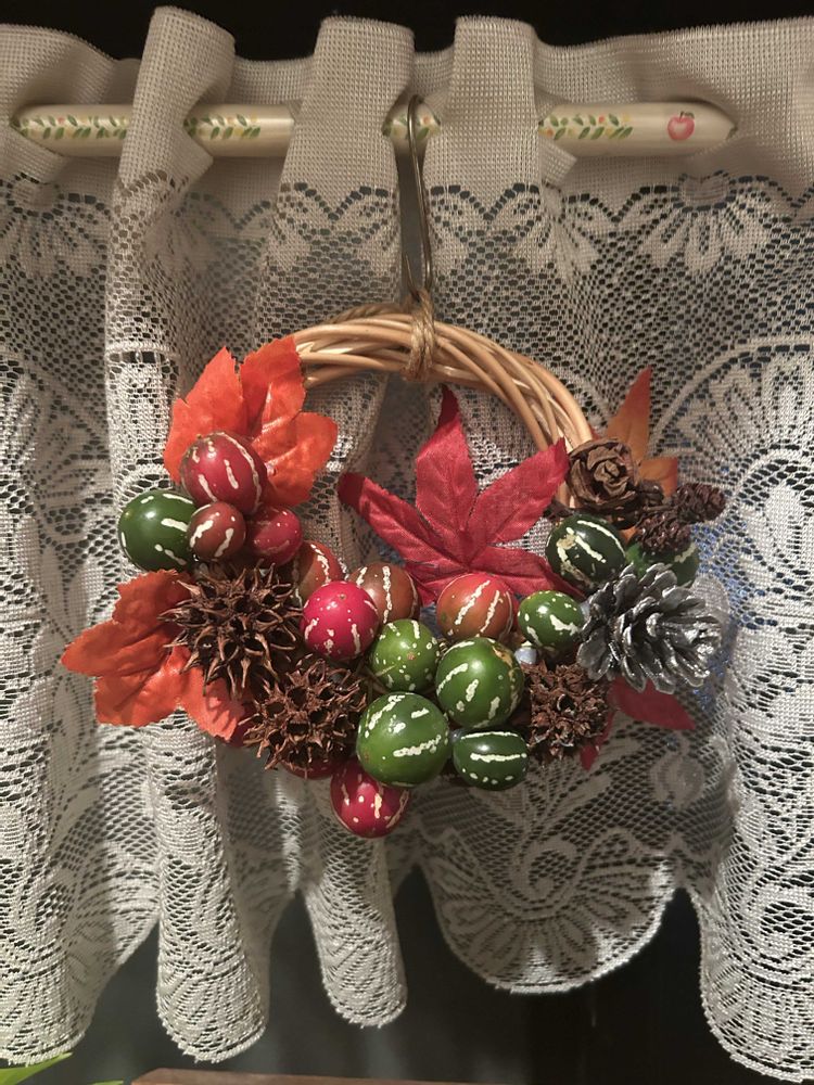 うちのオキナワスズメウリのリース、赤くなって来てるよ❤️