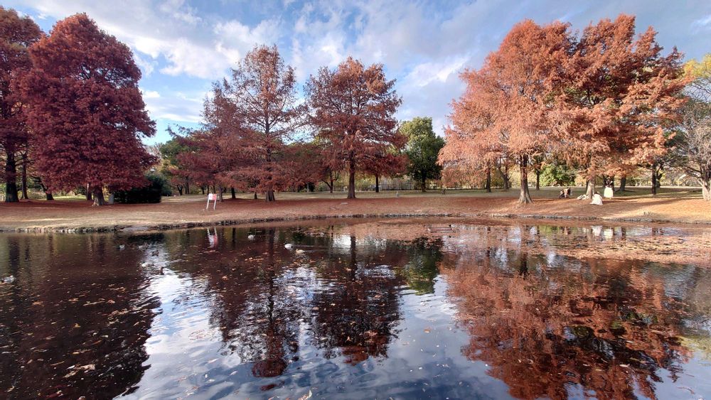 緑地公園のこの池の風景は大好きです🦆紅葉の時期は特別です🪿…