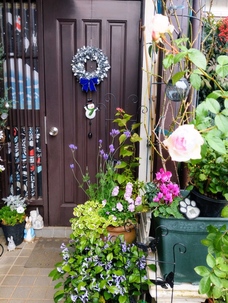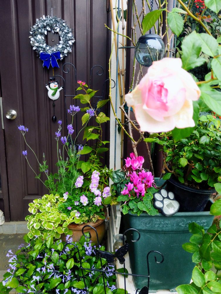 玄関前の寄植えのレースラベンダーと薔薇が通る度に良い香りで癒されます🤗🌿
