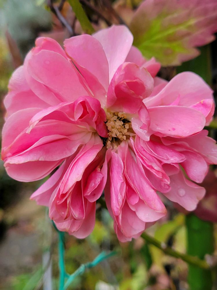 まだ冬支度も剪定してないので冷たい雨の中咲いてます。