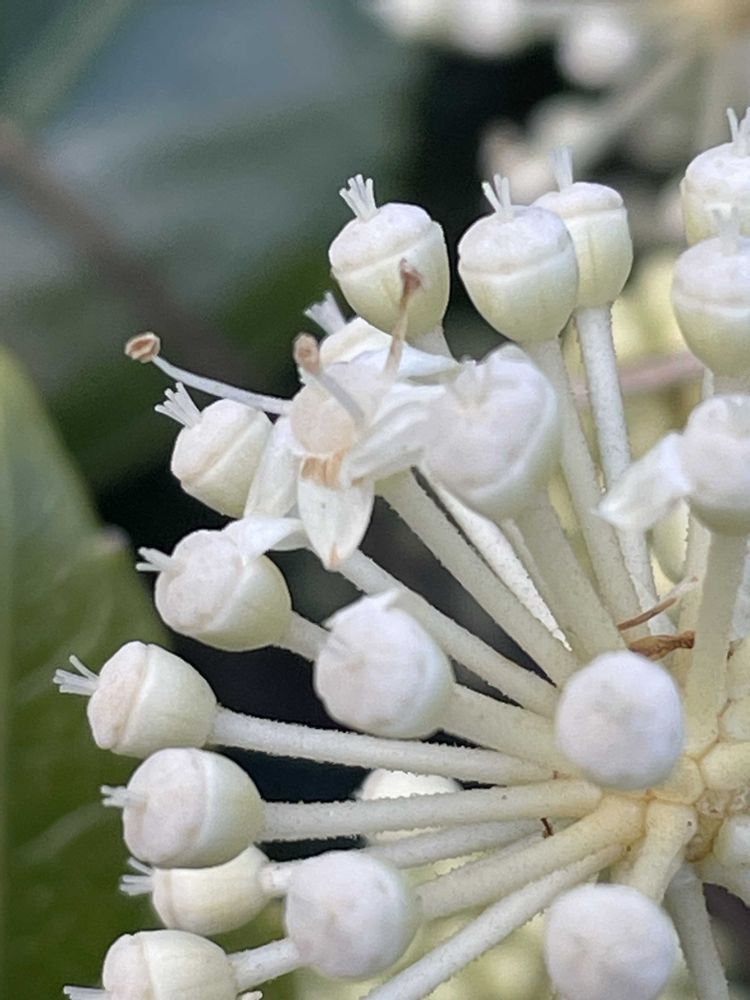 白い花を探して、散策していたらあるもんだね。ヤツデの花は中々可愛らしいよ