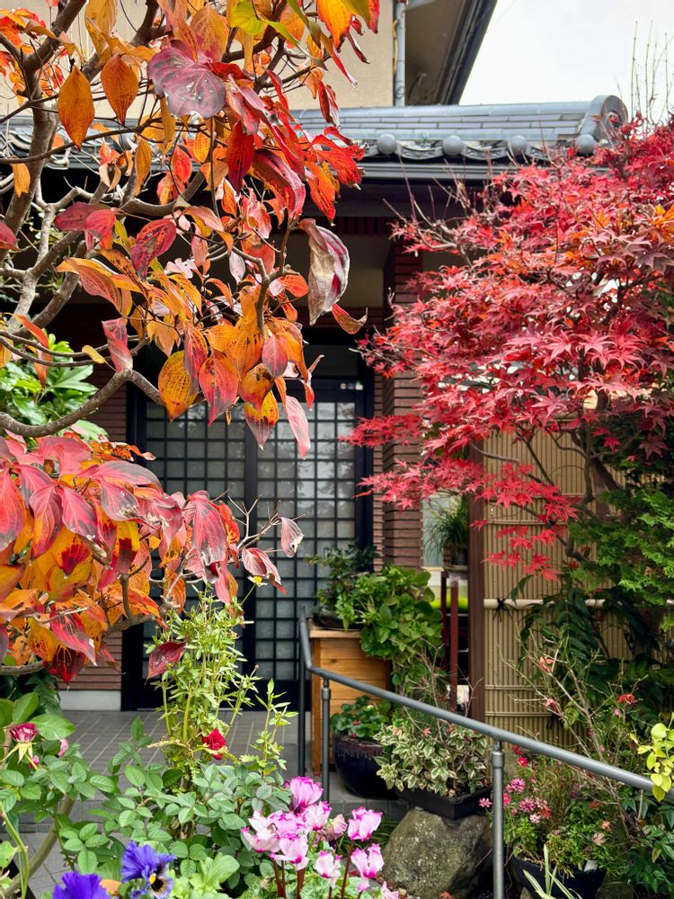 ①玄関の紅葉🍁モミジとヤマボウシ