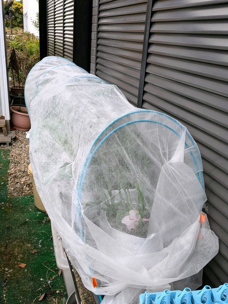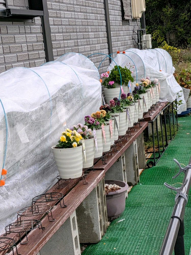 いつもなら挿し芽と鉢をコンパクトにして冬越しするけど家の片付けで間に合わず😭そのまま簡易温室に移動 。もうパンパン😂なのでその他大勢の娘はビニール掛け💦ホントにホントにでーじょーぶか?でもでも…避難場所がない😭😭