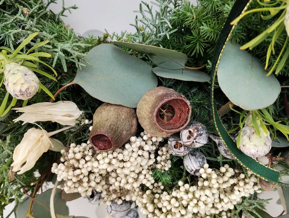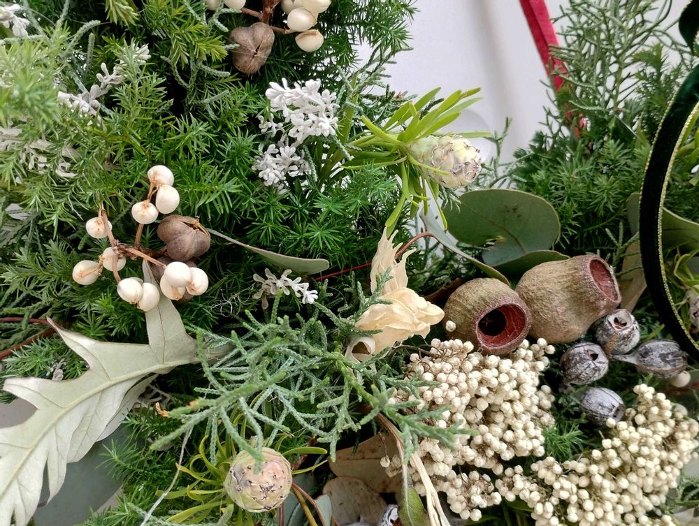 定番のドライリースもいいけど、フレッシュで華やかさのある花のリースもステキ!