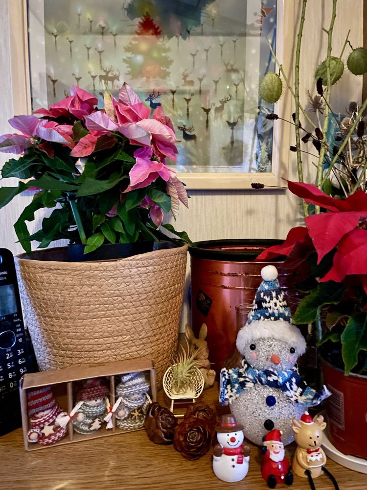 おはようございます❄朝からみぞれ❄混じりの雨が降ってます。プリンセチア可愛い(*‘ω‘ *)🩷メジロちゃん🎀お尻ぷくぷくで可愛い(*‘ω‘ *)もう冬ですね〜