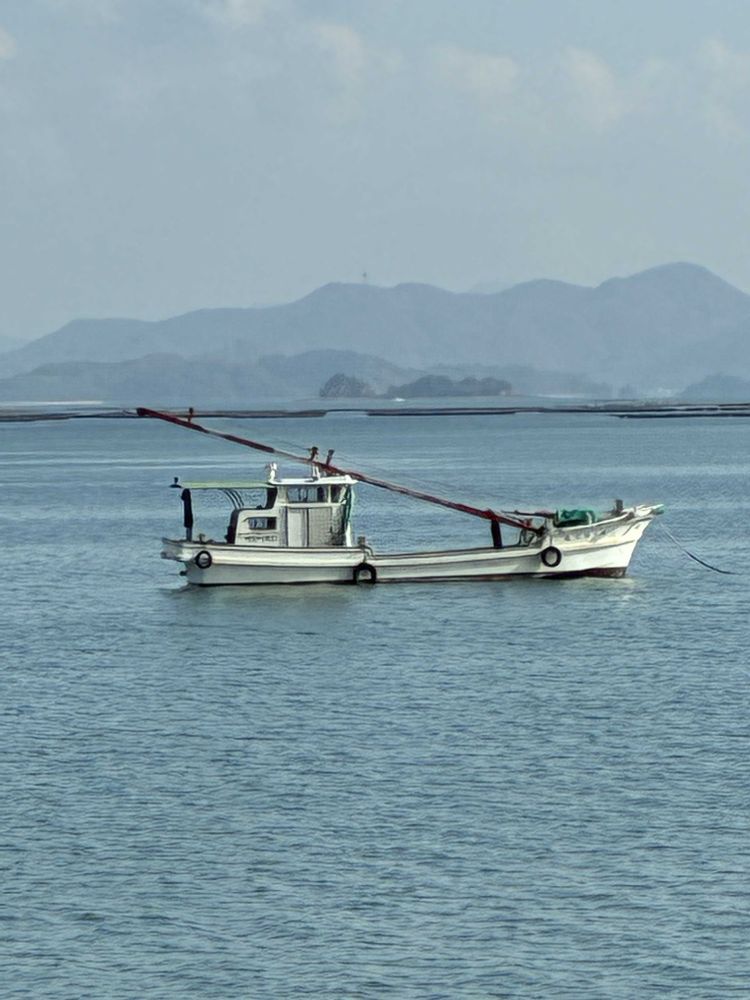 教室があった安芸津は、牡蠣🦪の名産地。牡蠣船の向こうに牡蠣筏が見えています。今年は小ぶりですが、