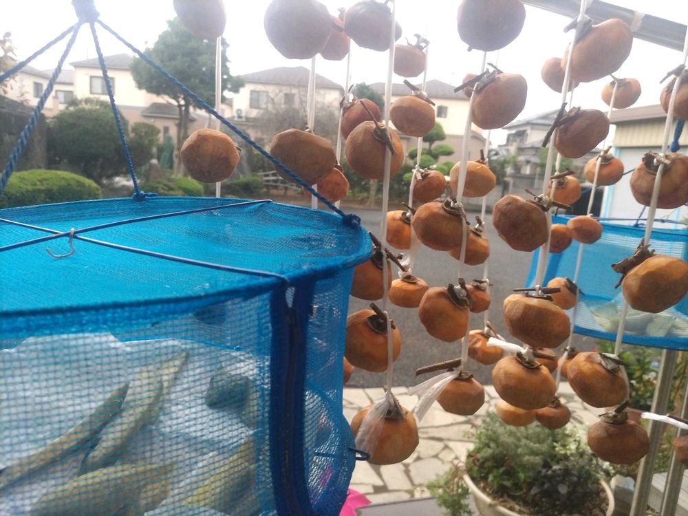 ポインセチア2個で500円でした。高いのもあるけどこれで満足。この上には干し柿と干し芋作りをしています。