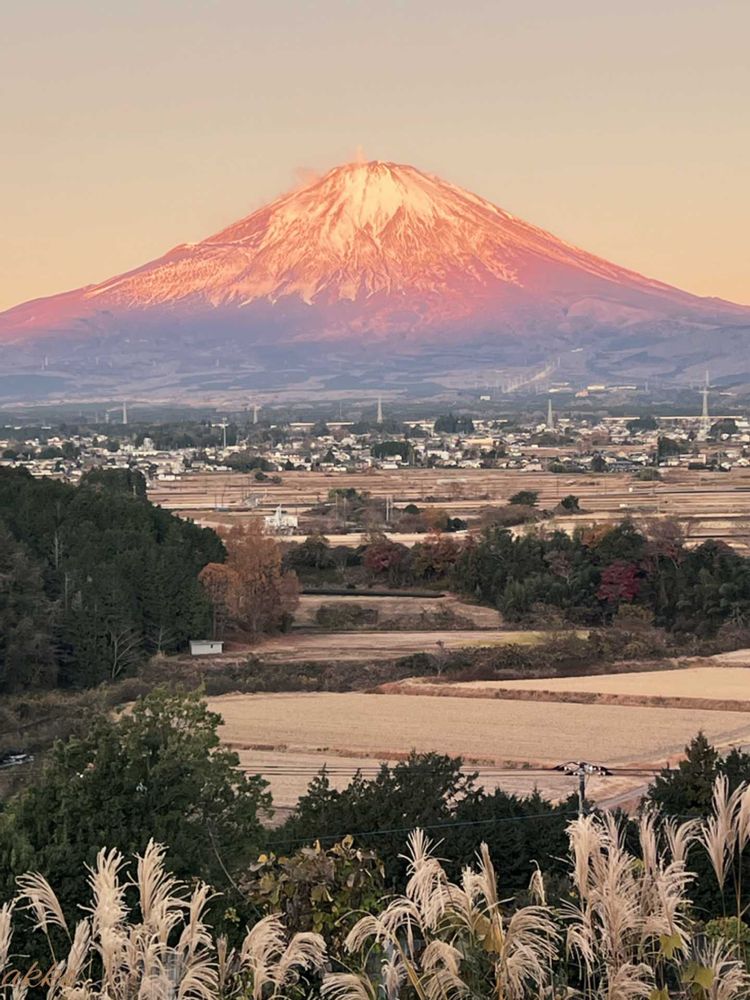 最近きれいに赤く染まり、夏は赤富士、冬の雪化粧の赤富士は紅富士と呼ぶそうです