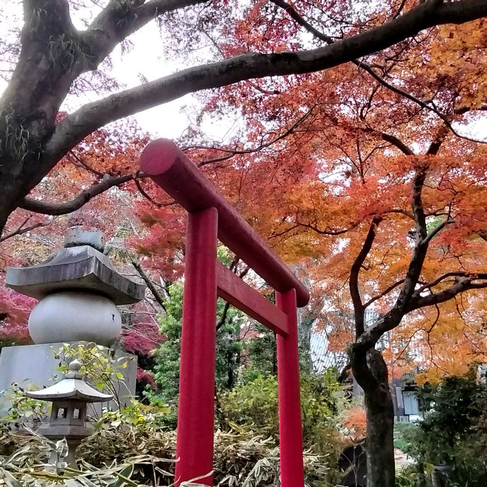 お寺の黒い建物や鳥居や石はモミジが似合いますね🤗💞
