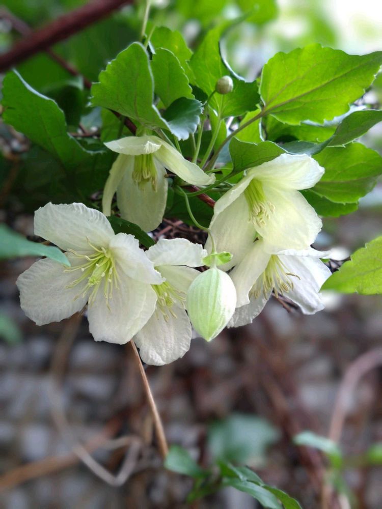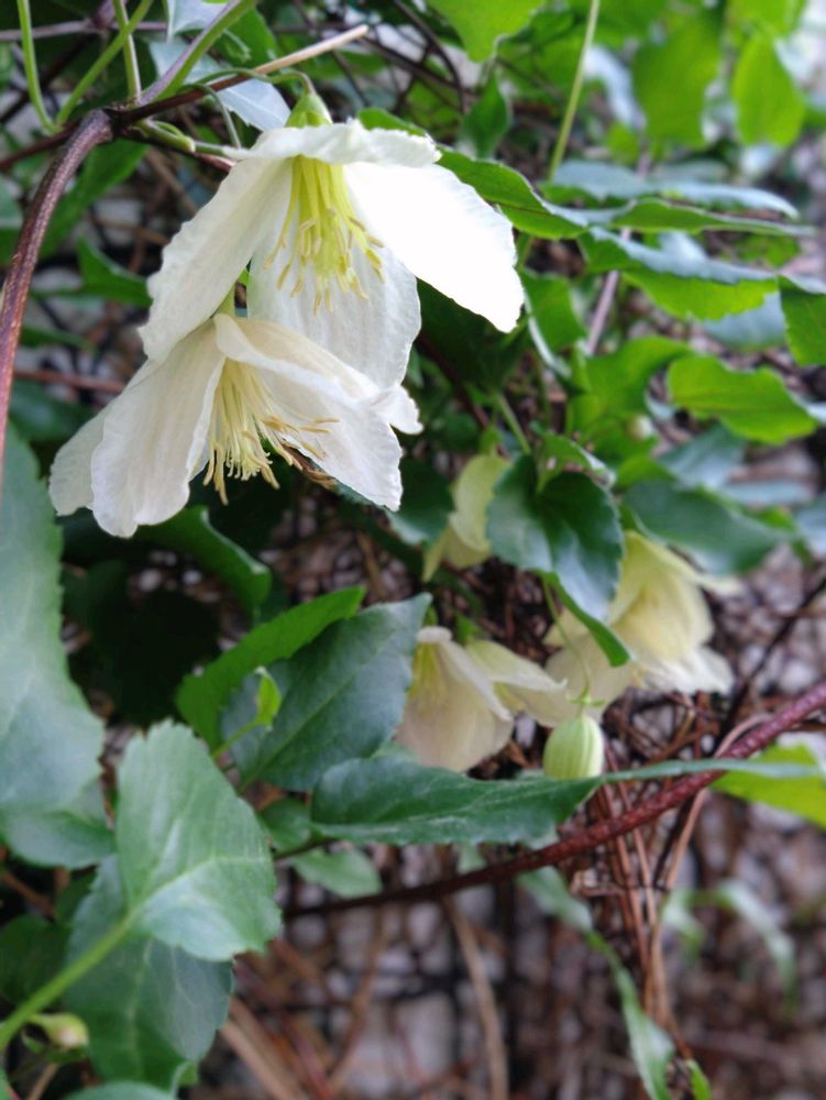 クレマチス ジングルベルが去年よりも多く花を付けてくれてます🤍