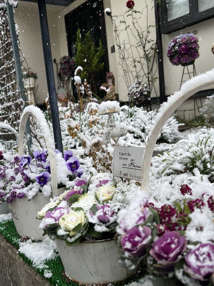 それとも、花が雪を纏って綺麗と言うべきか🤭このぐらいだっら可愛いもんですよ😍