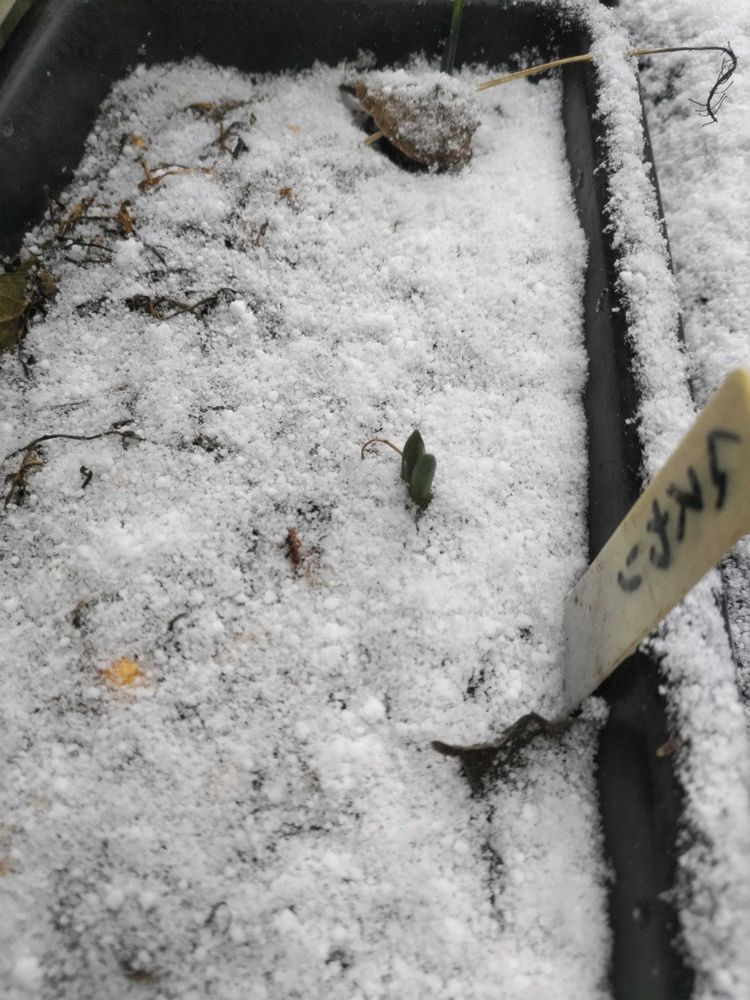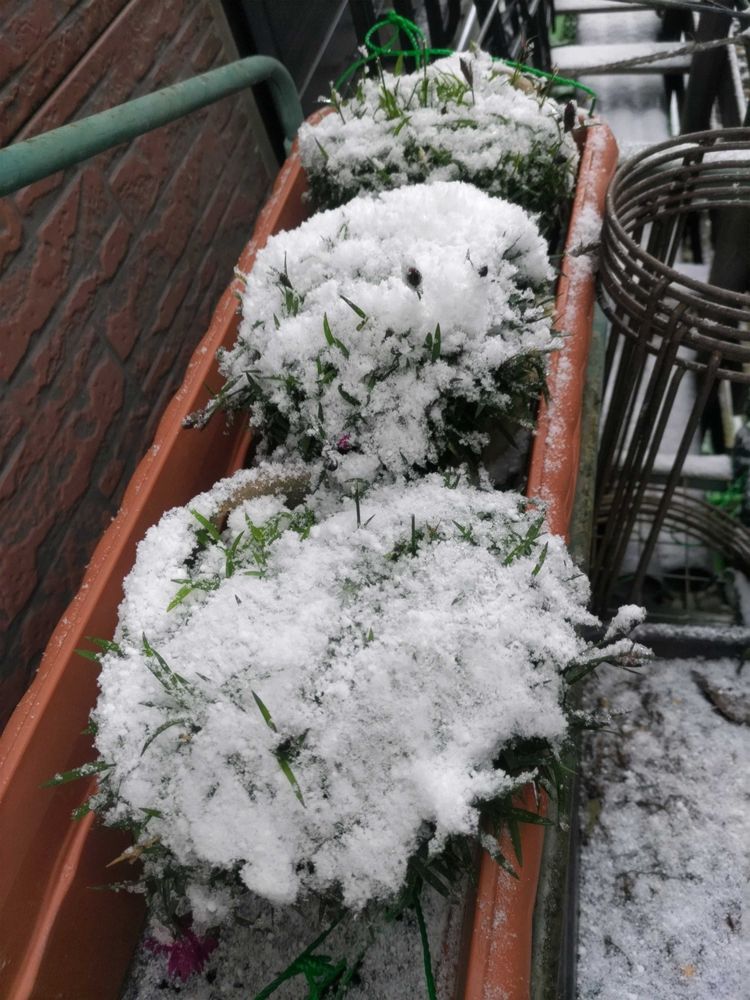 〈地道投稿〉おはようございます。降雪3センチ未満に駐車場−2度の朝です。1️⃣2度目の投稿?大文字草「斑入 百花」薄化粧してますが、凛として咲いてます🤗強い(つえぇ〜!!)2️⃣町道・駐車場に置いてました「ナデシコ 3鉢」咲いてた花凍っており、花取り軒先保管場所に移動しました3️⃣ナデシコ移動した脇の、プランター👀「ムスカリ」新芽でてます、これから本番の寒さ続きますが大丈夫🥹