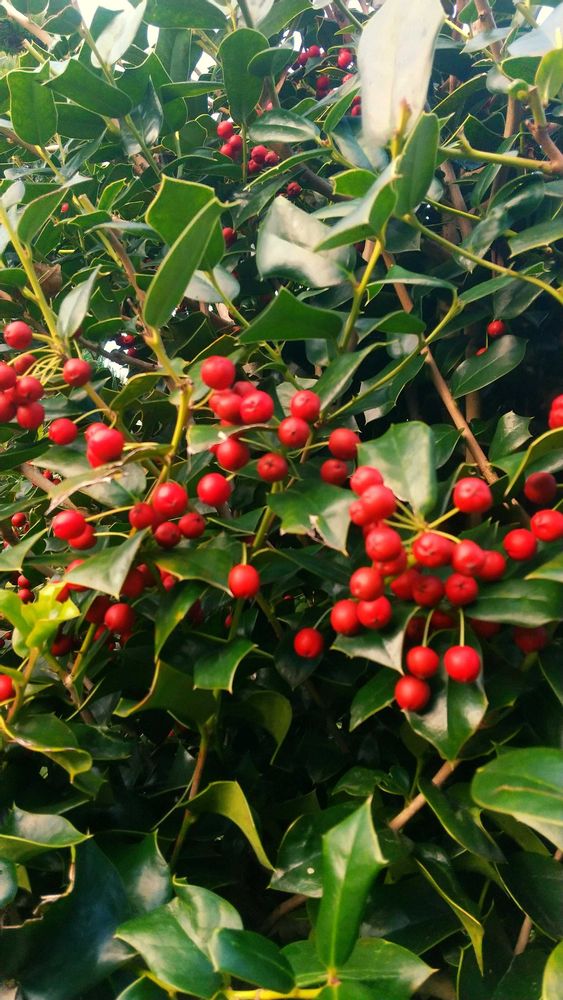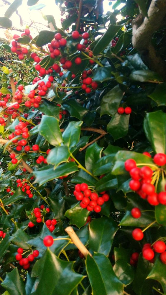 寒風のなか、クリスマスホーリーの赤い実が、鮮やか🎄