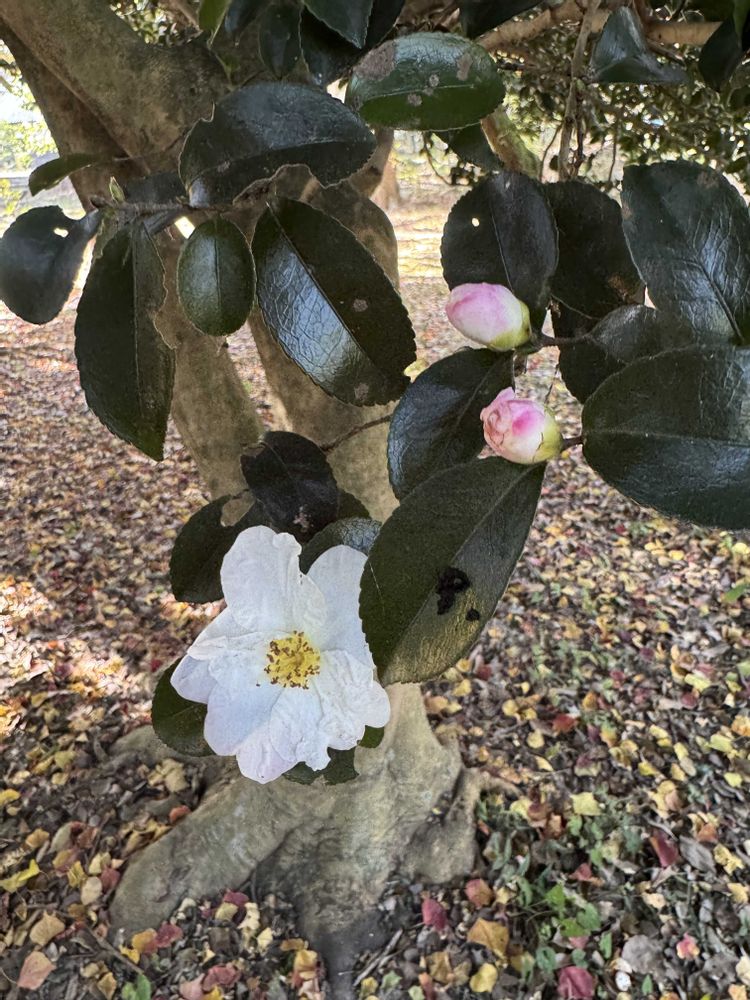 大きなサザンカの木💚白いお花が素敵🤍💕