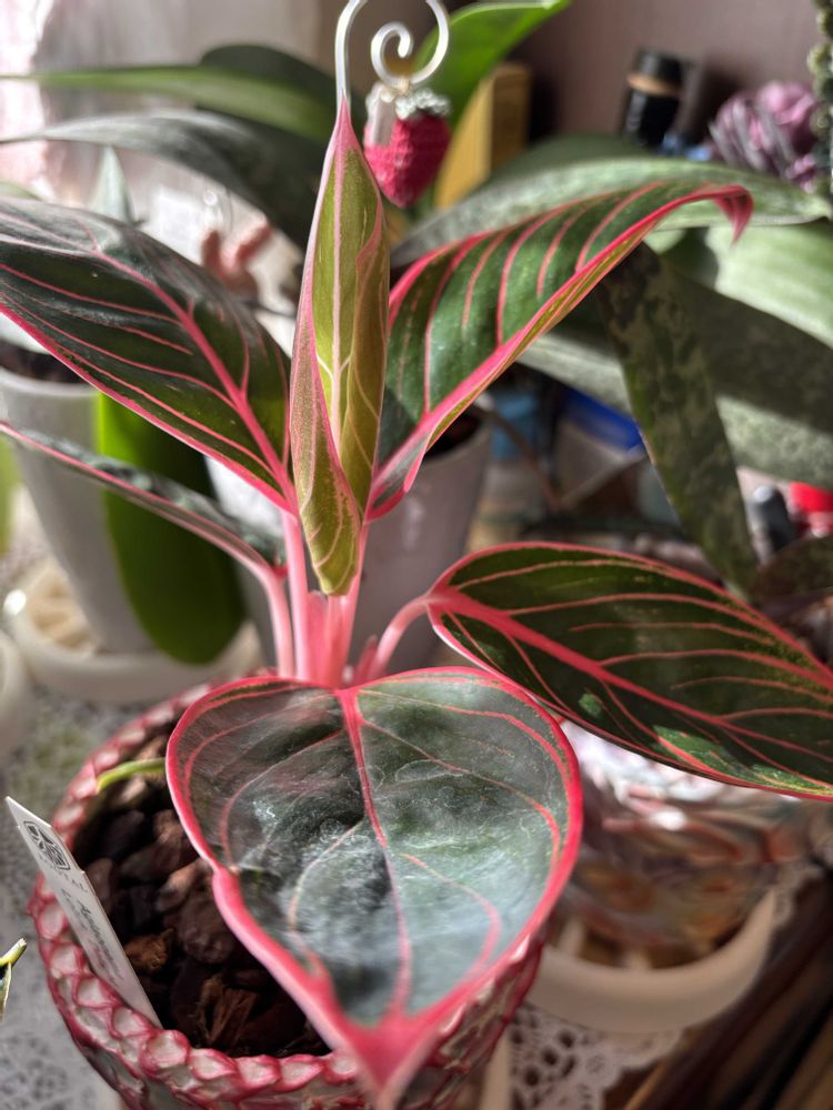 ①アグラオネマロータスディライト ショッキングピンク🩷の葉脈😍茎のほのかなピンクも可愛い💓