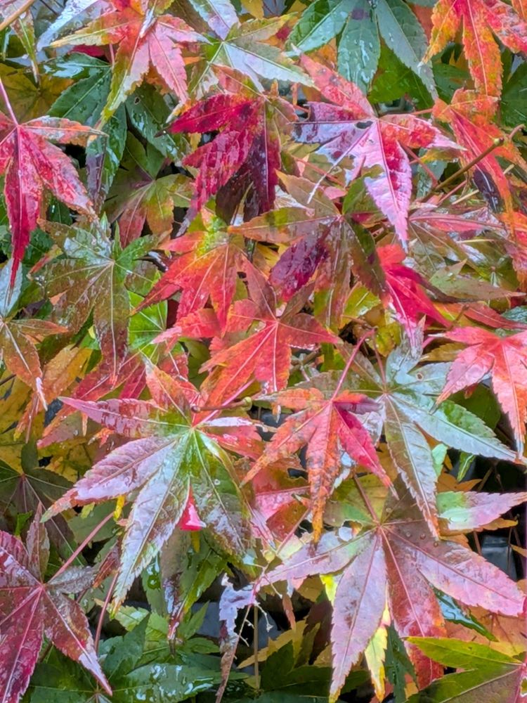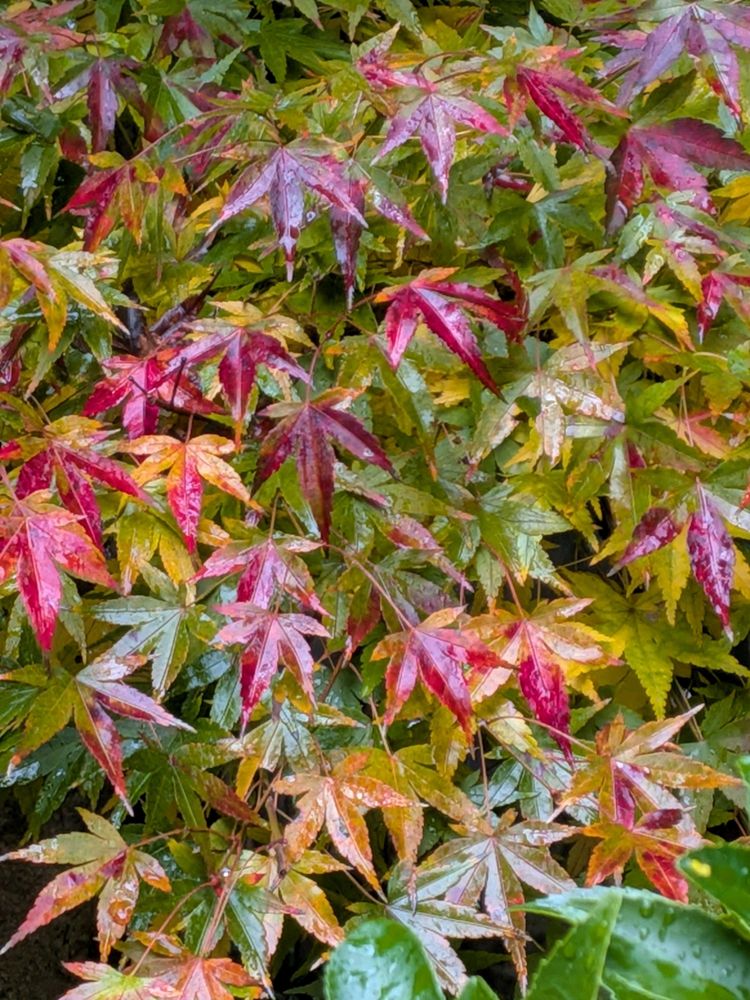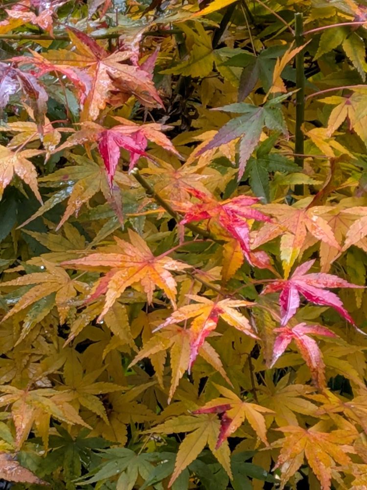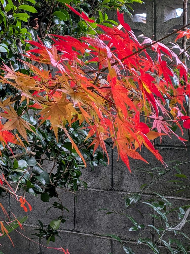 庭のモミジ🍁は、よそより少し遅れて紅葉します。何本かの木々が少しづつ遅れて紅葉していくさまは少し自慢かな?