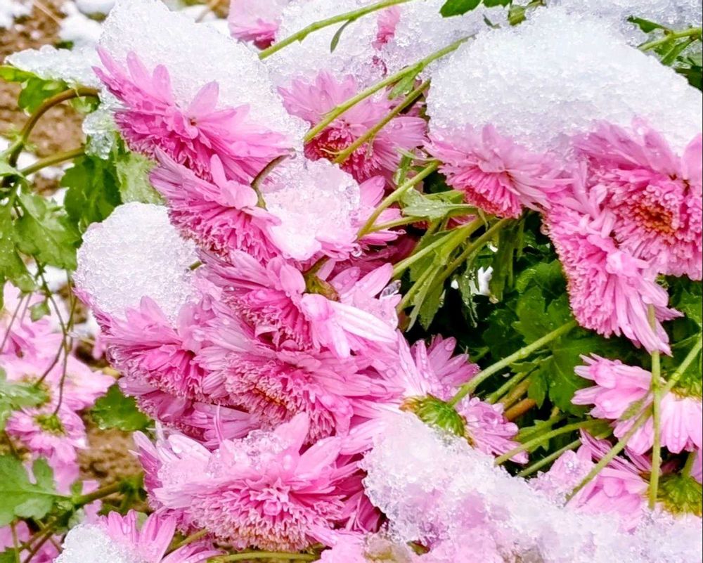 花が雪の下で可哀想🥹