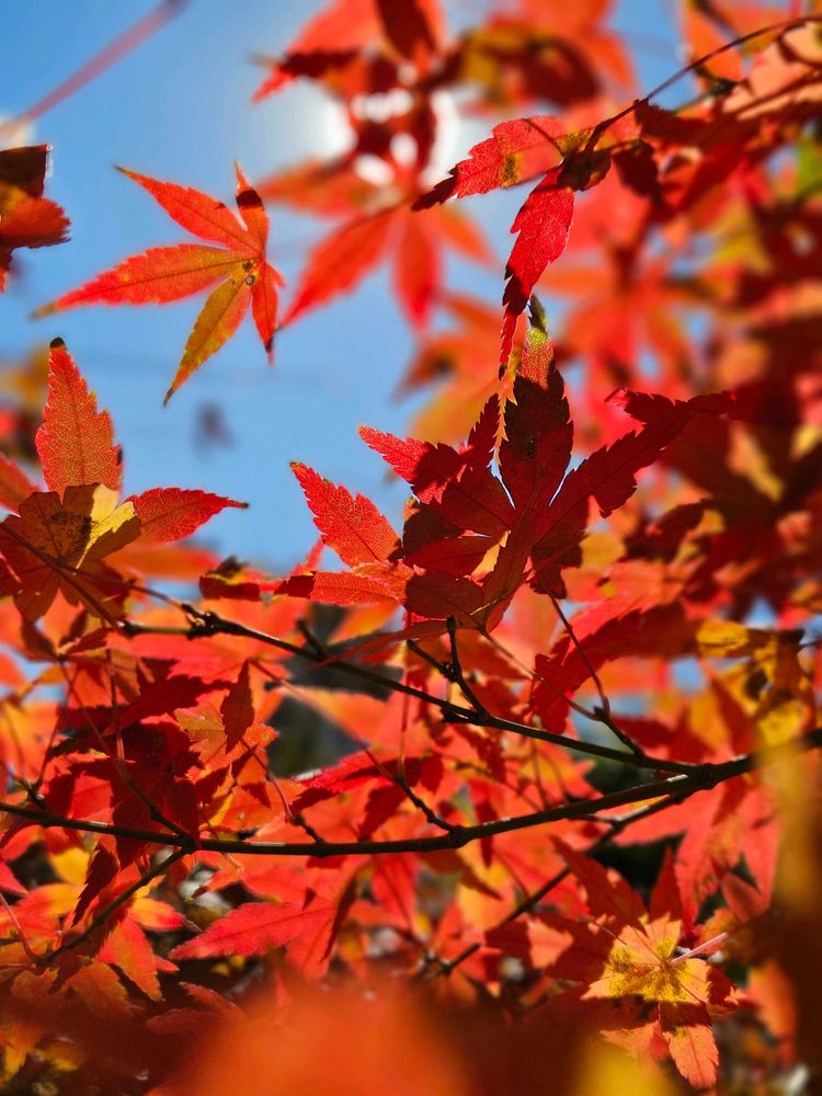 冬空に真っ赤な葉の色が映えますね😌