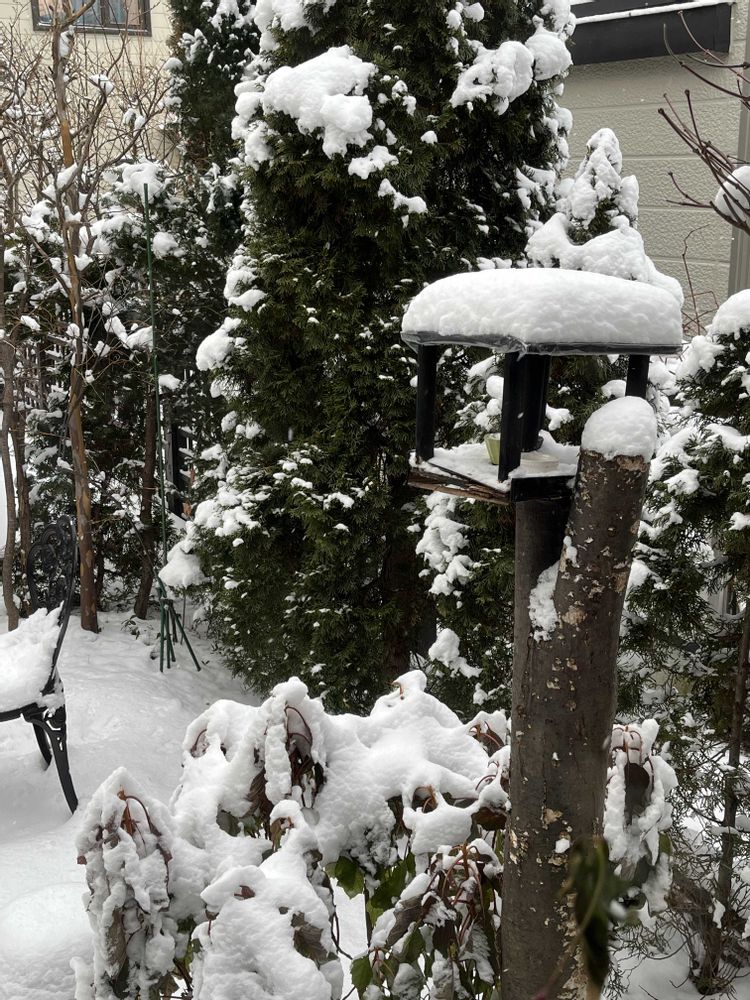 ②雪が積もった餌台