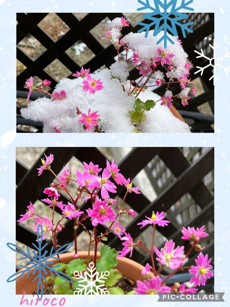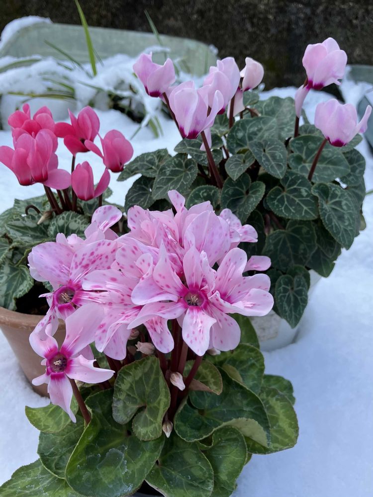 雪の中の大文字草やシクラメン綺麗ですね💕💕