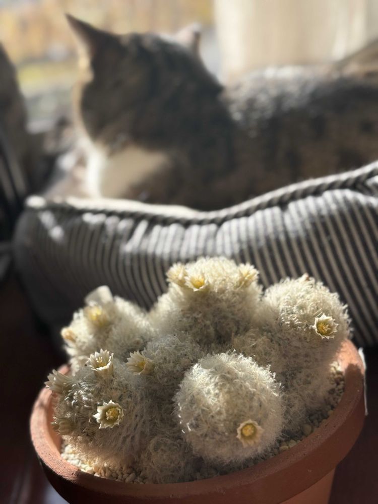 もふもふさんたち、気持ち良さそうに日向ぼっこですね🌵😺😺