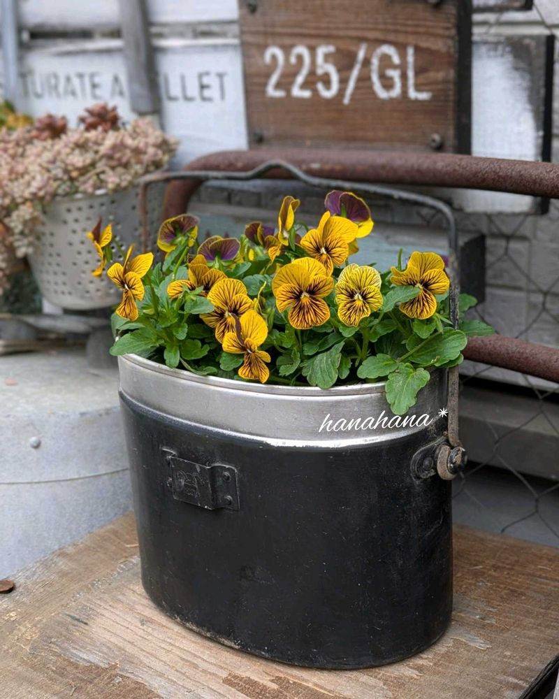 ビオラの方の飯盒は持ち手が青みがかっていたので…お花の色と合わせてみました🙌