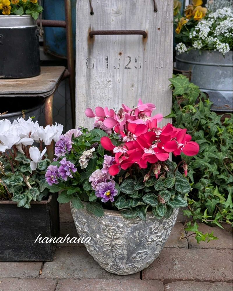 hanahanaさんのパンジーパスフリ,ガーテンシクラメン ジックス,寄せ植えの投稿画像