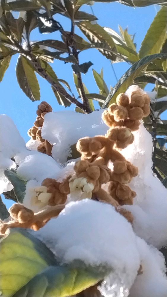 ビワって、雪に埋もれながら咲くんですねー😵⛄❄冬咲く花は健気ですね😊