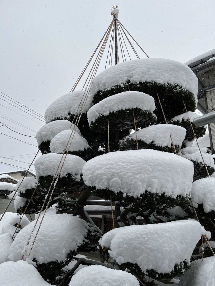 一晩で結構つもりました❄️💦南天も雪囲い🪴