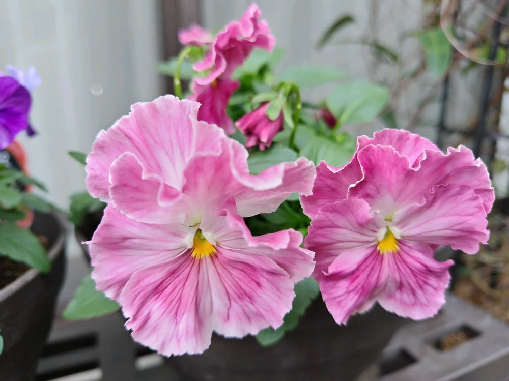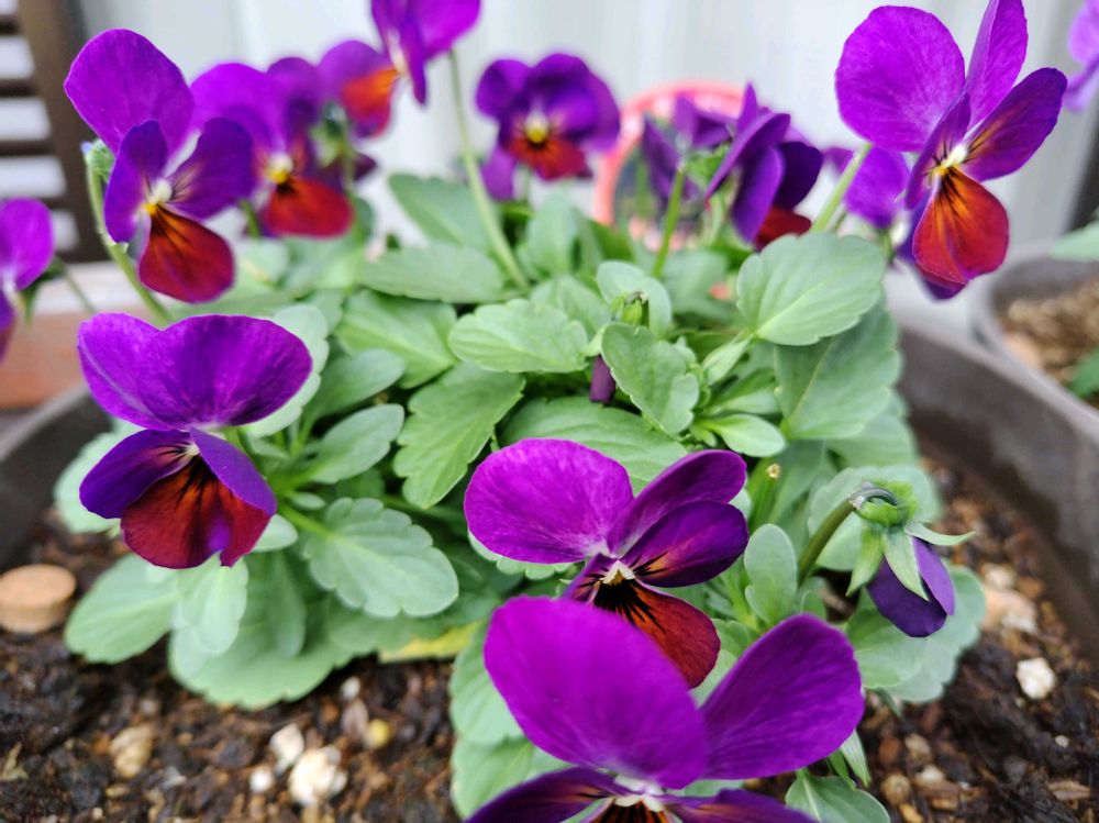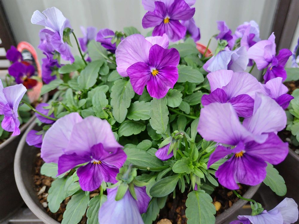 一重のビオラはかなり拡がって来ました😀みんなお一人様鉢だから、はっきり違いが出ています