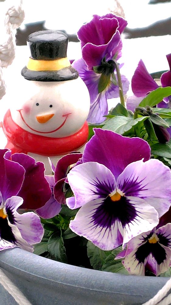 朝は雪に埋もれていたパンジー
