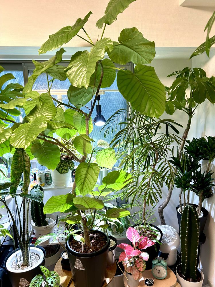 お気に入り😊この厚葉のウンベラータさんは大きな葉っぱを広げて歌舞伎役者のように暴れてます😊来春はバッサリ剪定かなぁ😊