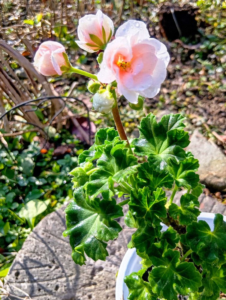 ローズゼラニウムかなぁ〜 咲き始めましたよお天気の日にしました 可愛いゼラニウムです⊹⁺⸜(ᐡ⸝ɞ̴̶̷ ·̮ ɞ̴̶̷⸝ᐡ)⸝⁺⊹(*ᴗ͈ˬᴗ͈)⁾⁾