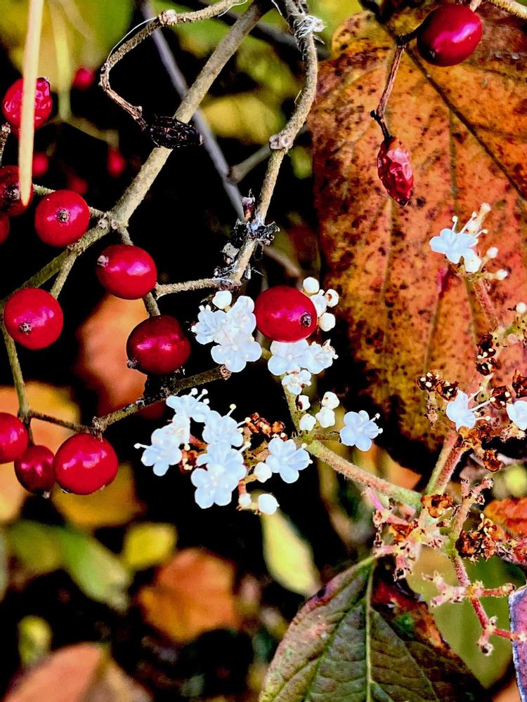 紅葉しているし、果実だって思って近づくと、白いお花があるんですよね😳⁉️