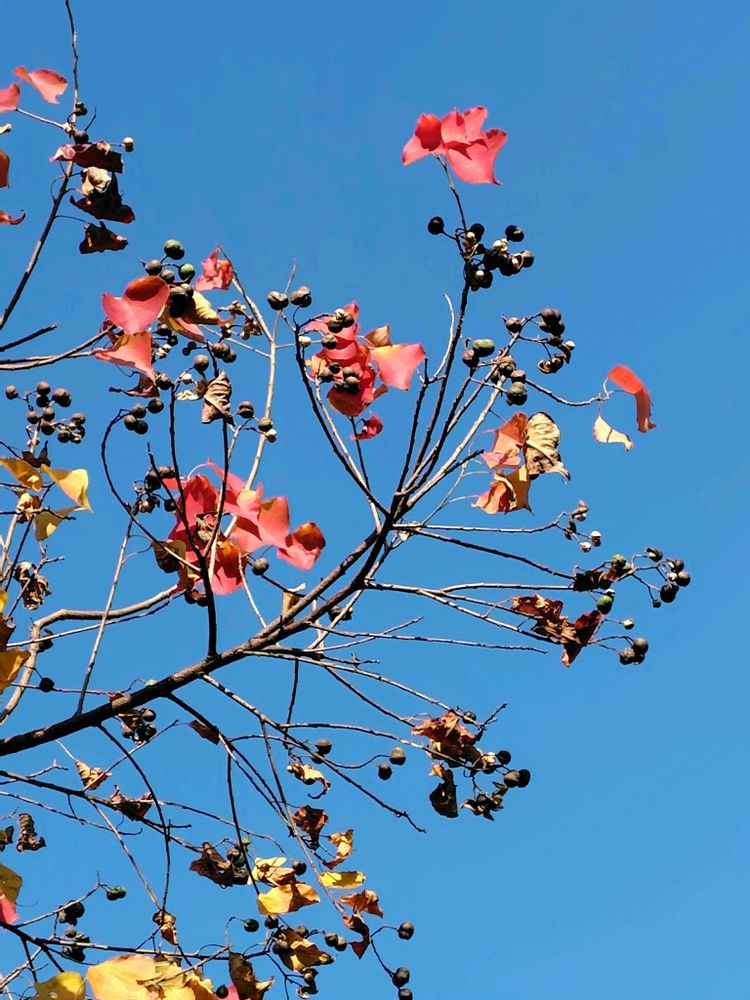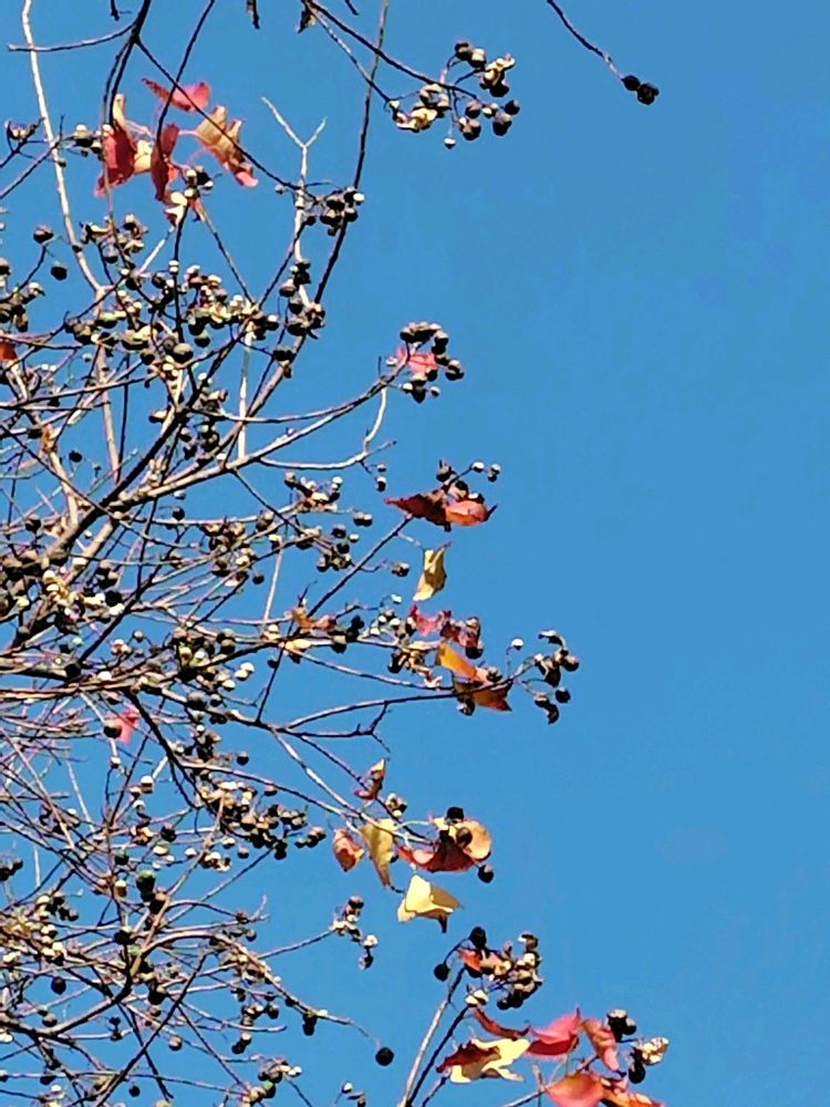 ナンキンハゼ、紅葉からあっという間に白い種子になりました🎶