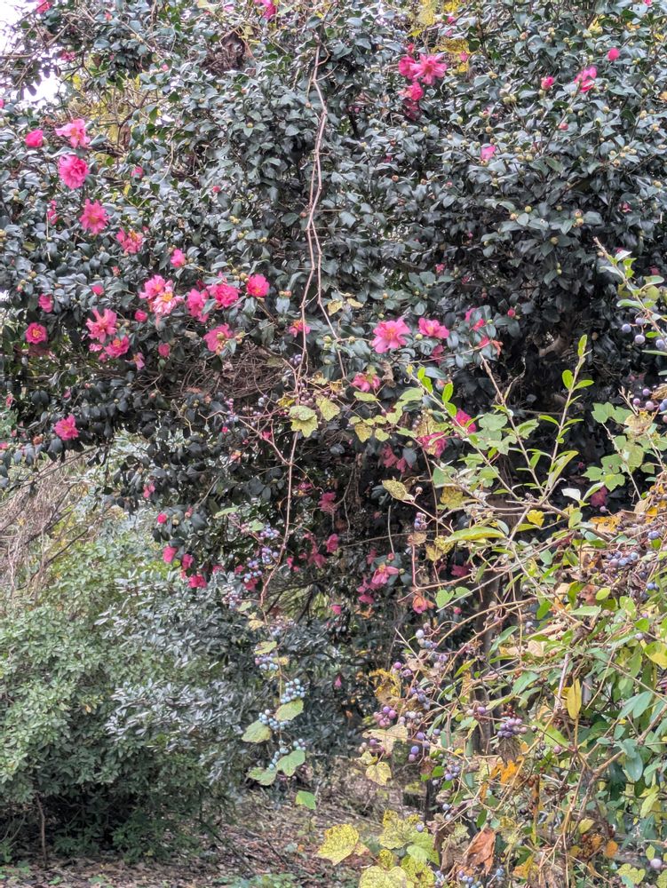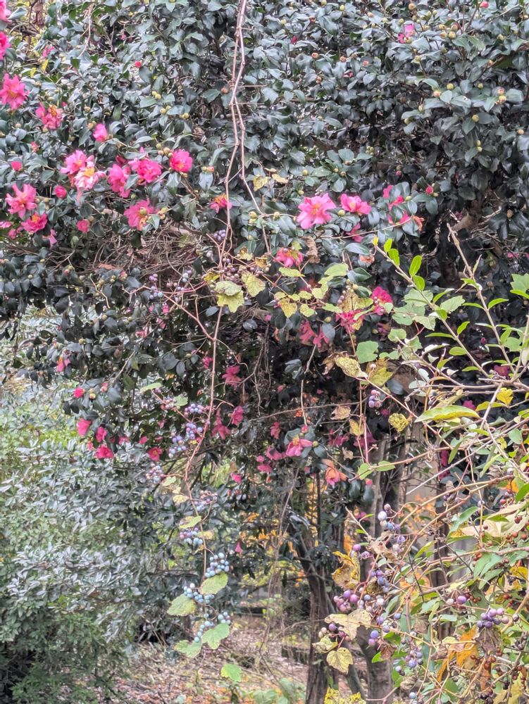 サザンカの木とノブドウ