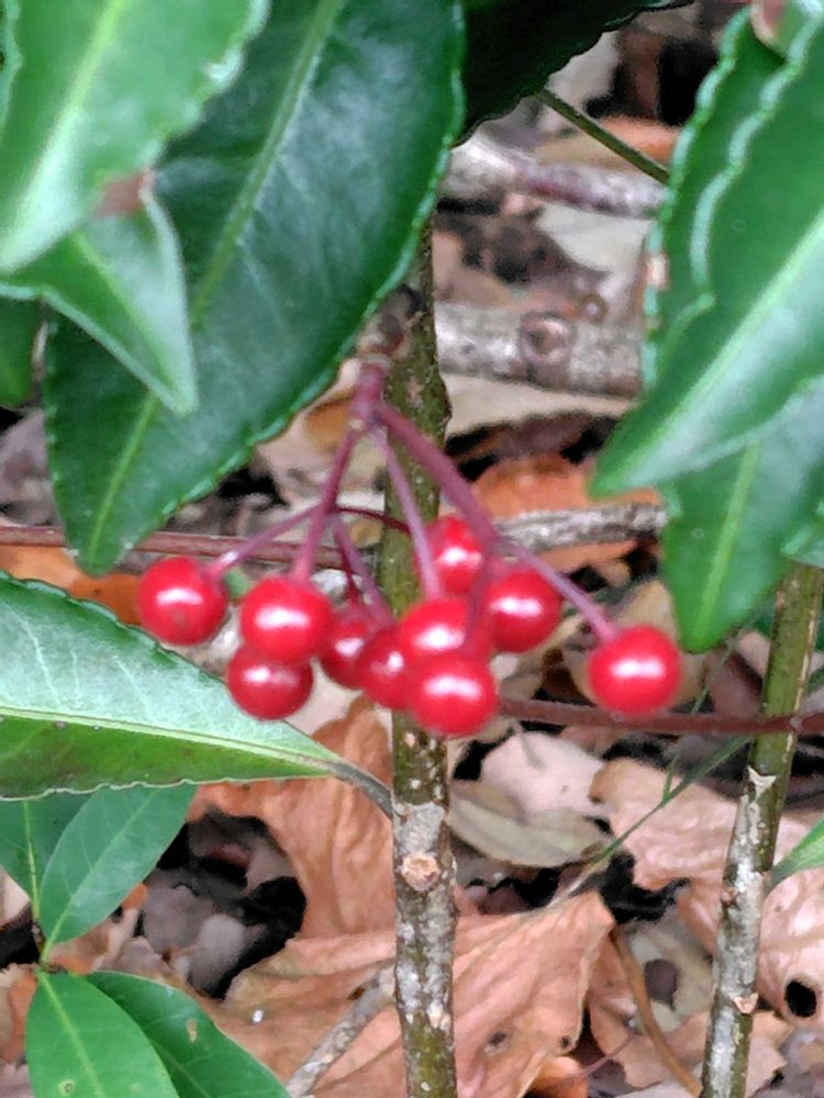 果実は液果で10月頃に赤く熟し、翌年の2月頃まで枝に残る。